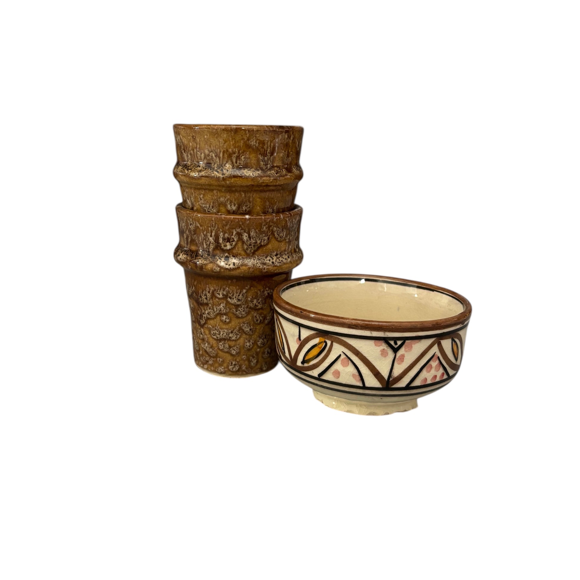 Brun kaffekopp i sandliknande mönster.