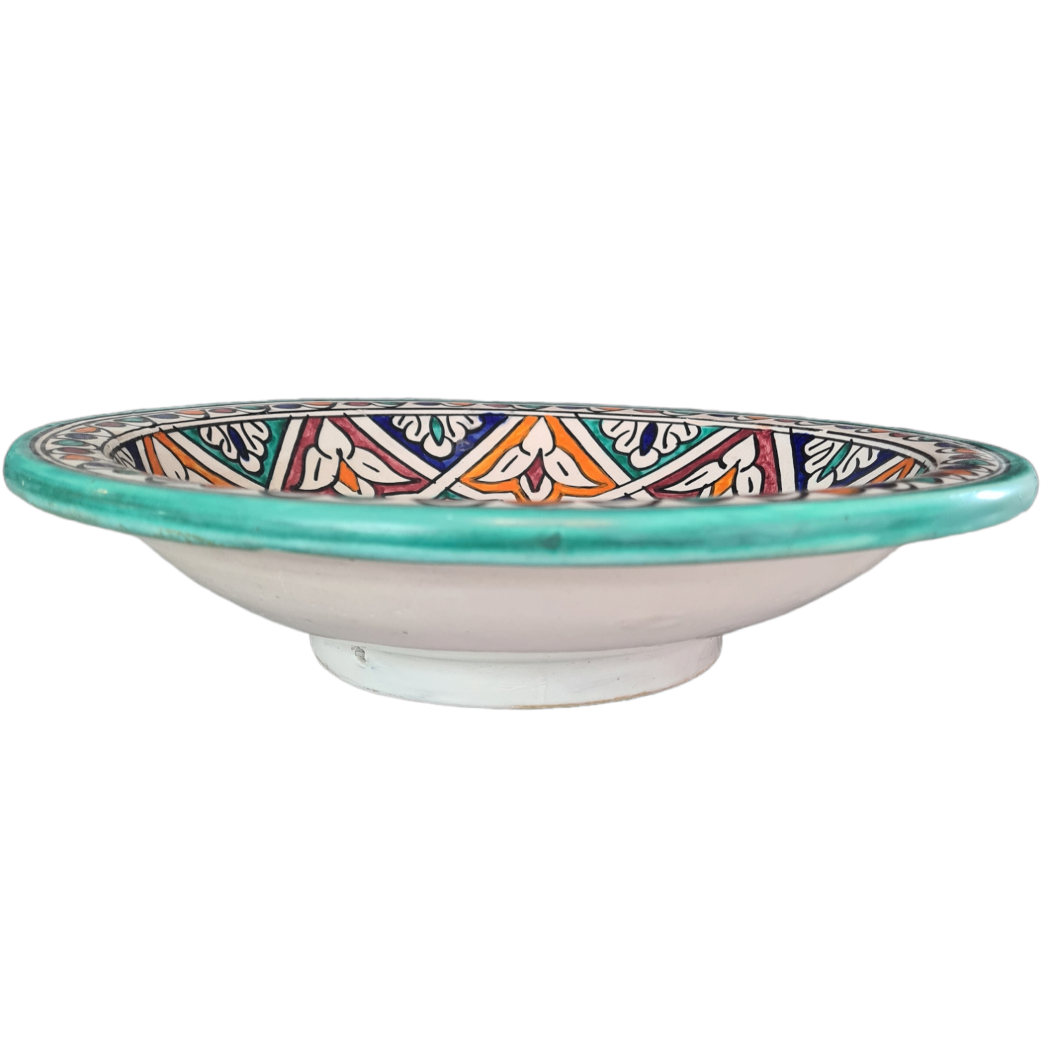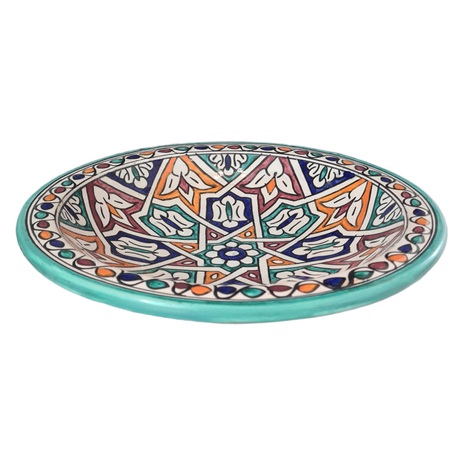 Handmålat robust uppläggningsfat från Marocko i dova nyanser.
