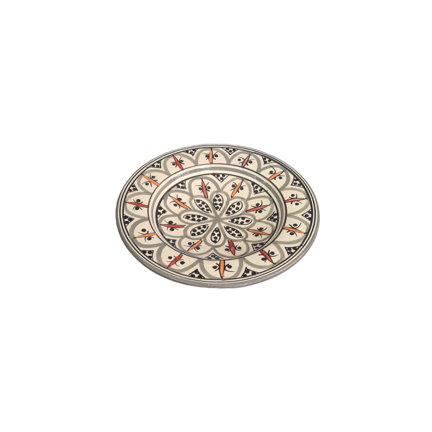 Marockansk handmålad assiett i grått och röd/orangea detaljer.