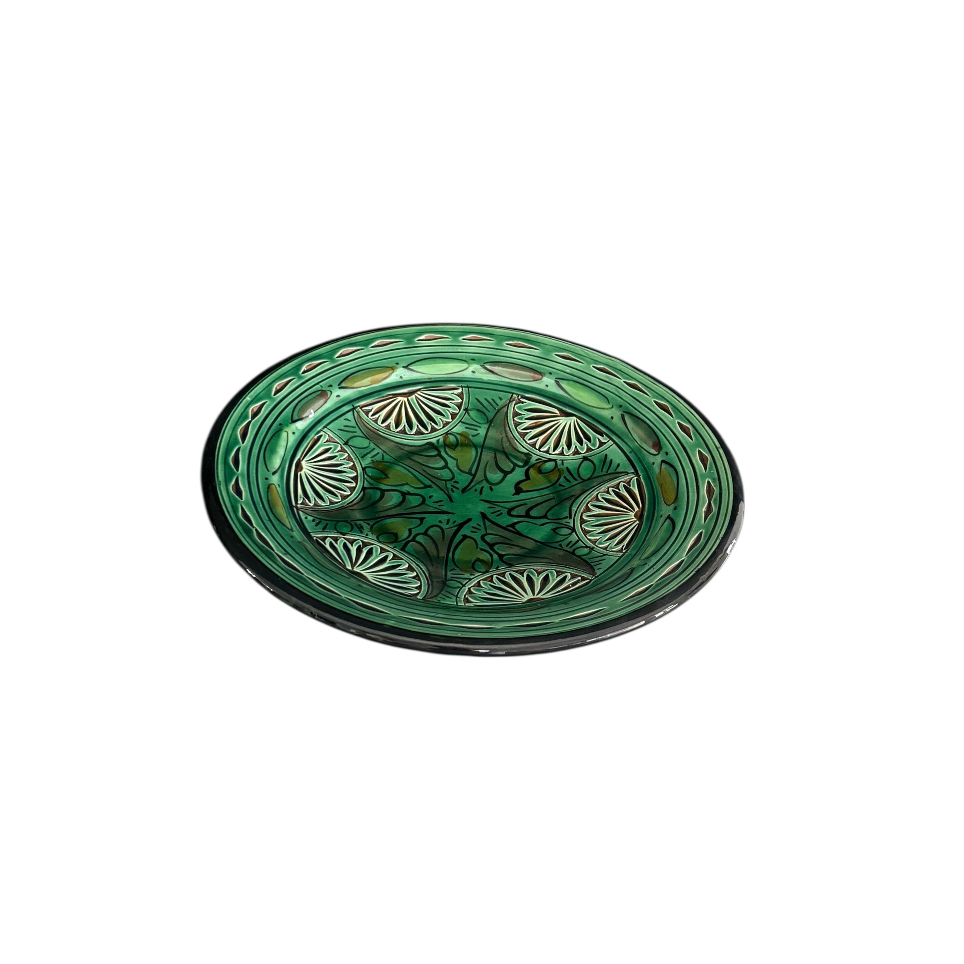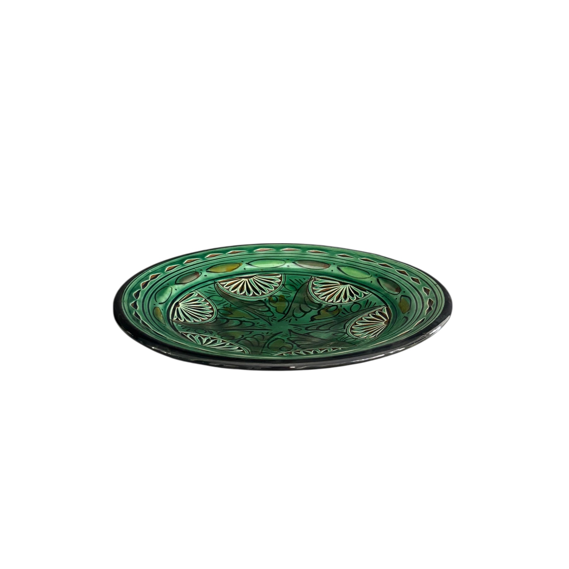 Marockansk grön assiett i handgjord, målad och inristad keramik.