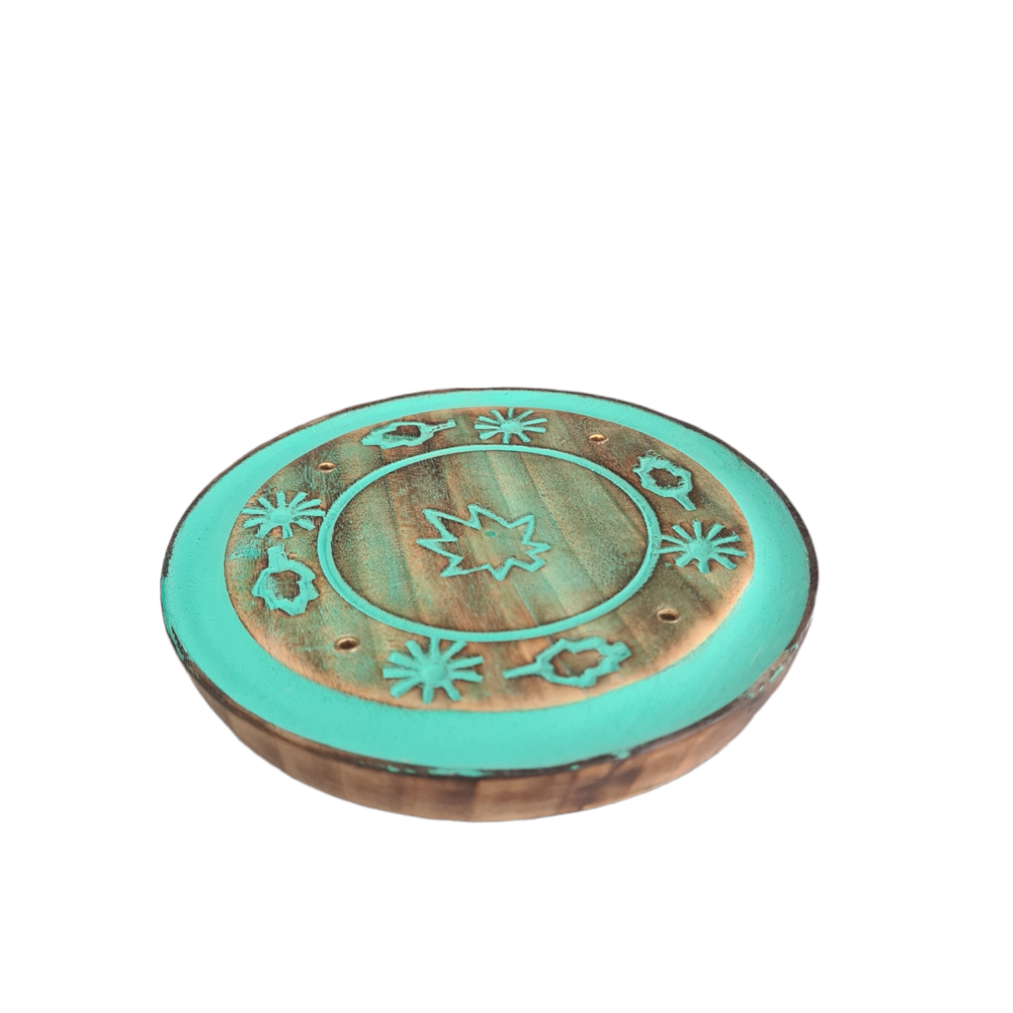 Handgjorda rökelsehållare för pinnar och koner i mangoträ.