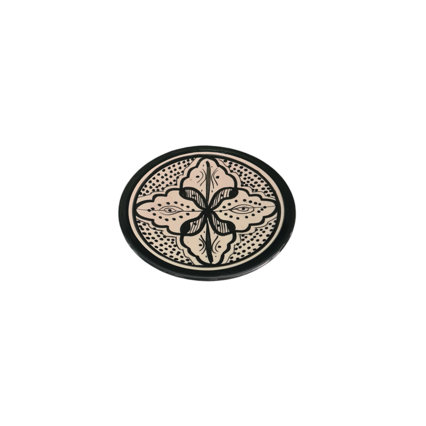 Svart/vit handmålad assiett i plattare design från Marocko.