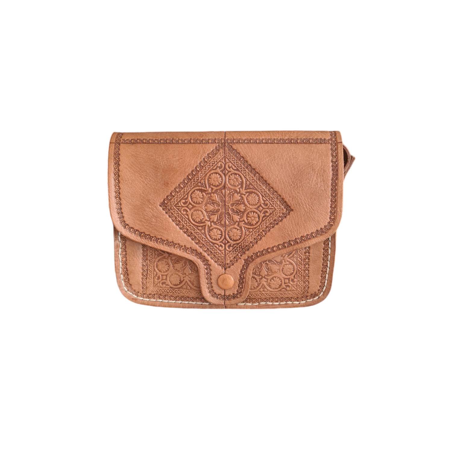 Brun väska med orientaliska mönster i äkta läder handgjord i Marocko.