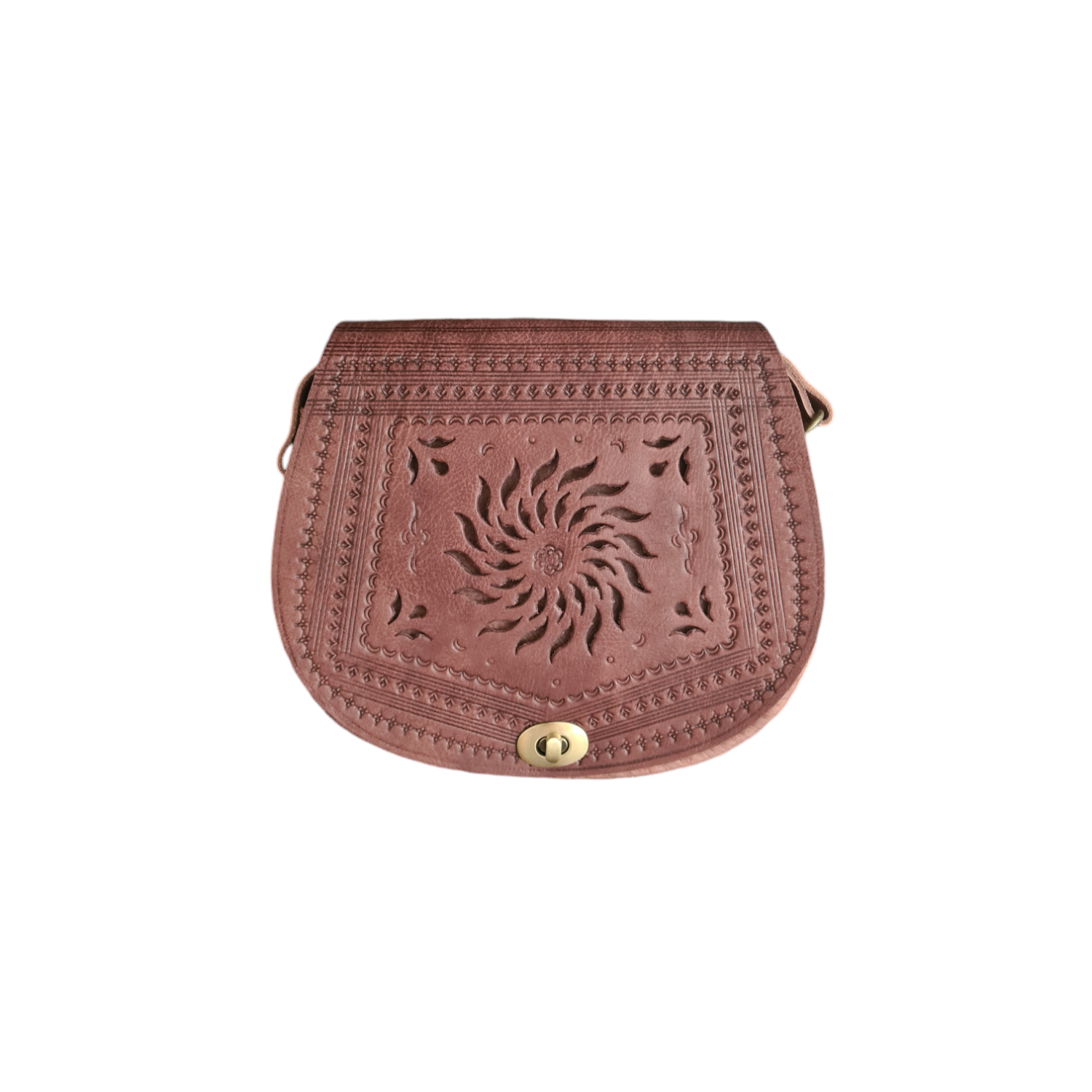 Brun väska med orientaliska mönster i äkta läder handgjord i Marocko.