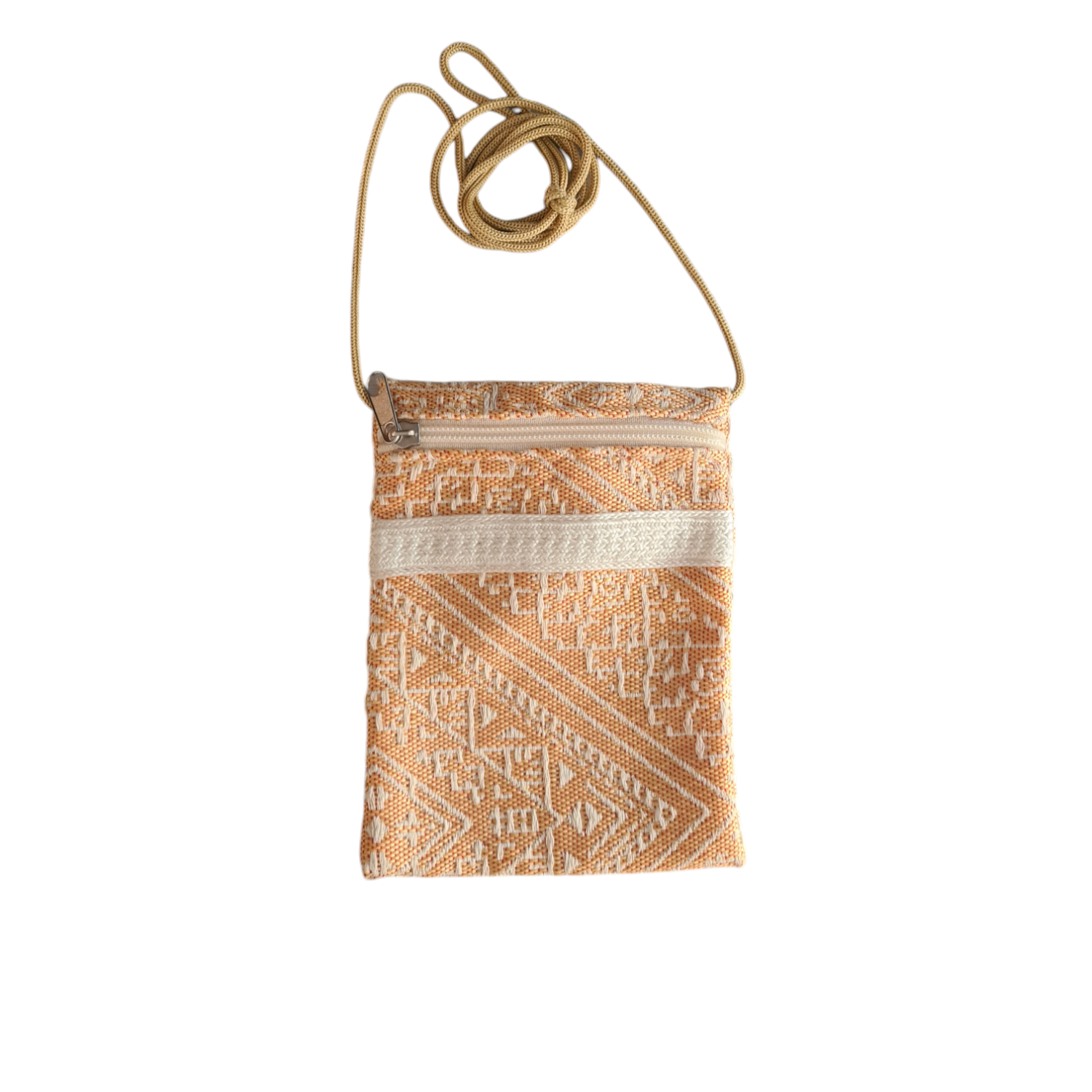 Gul tygväska med vita orientaliska broderier handgjord i Marocko.