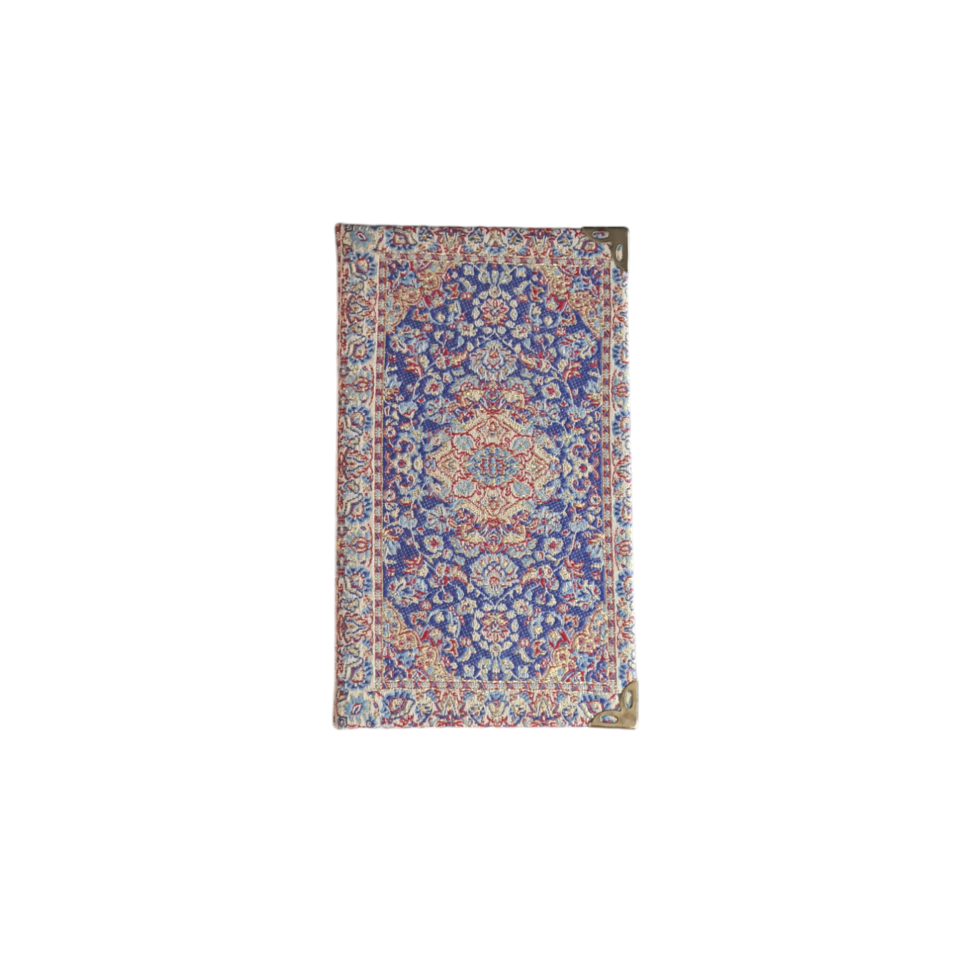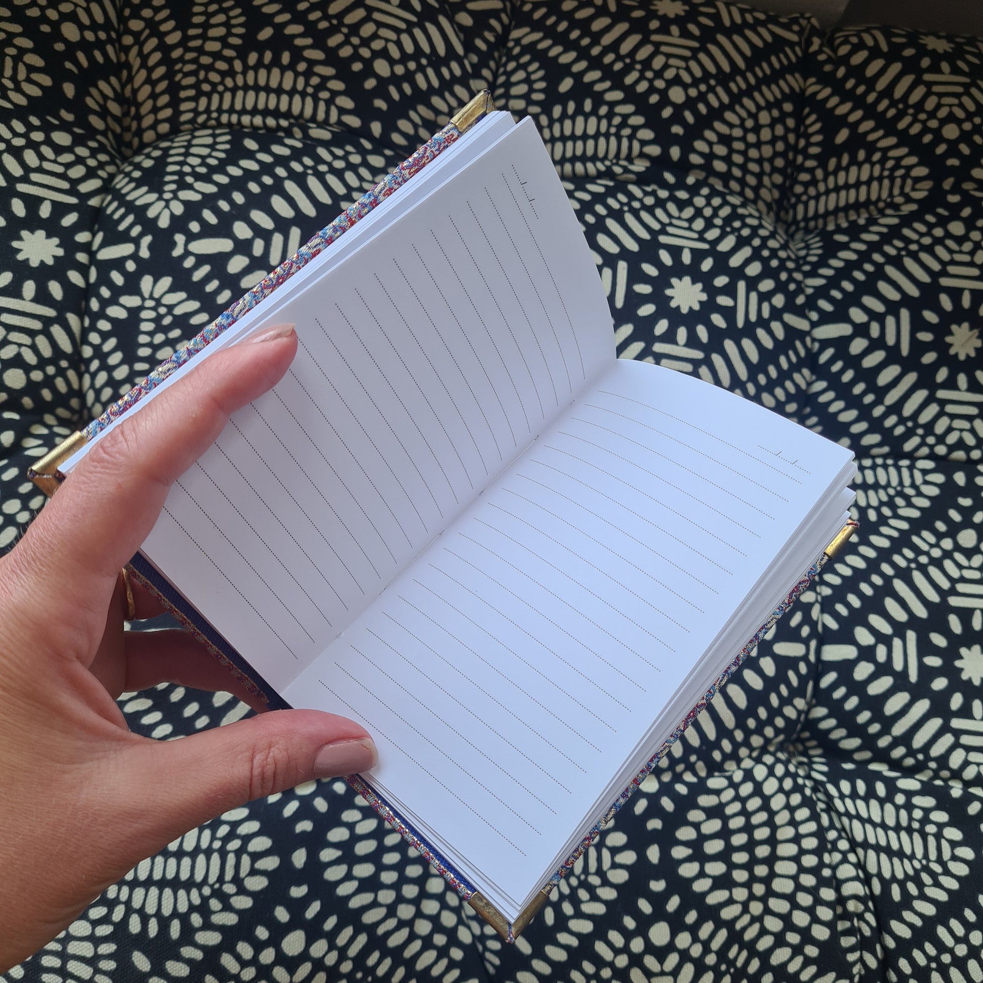 Blå anteckningsbok med guldiga och röda orientaliska mönster handgjord i Marocko.