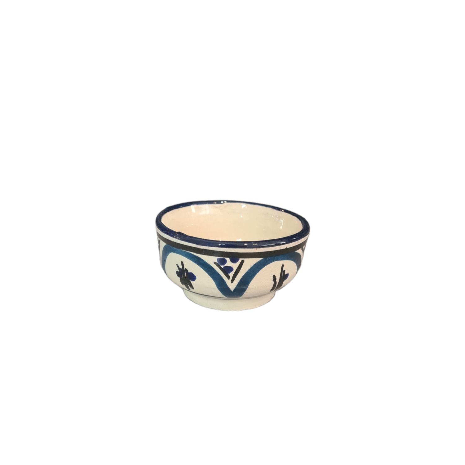 Handgjord marockansk vit skål med blåa detaljer.