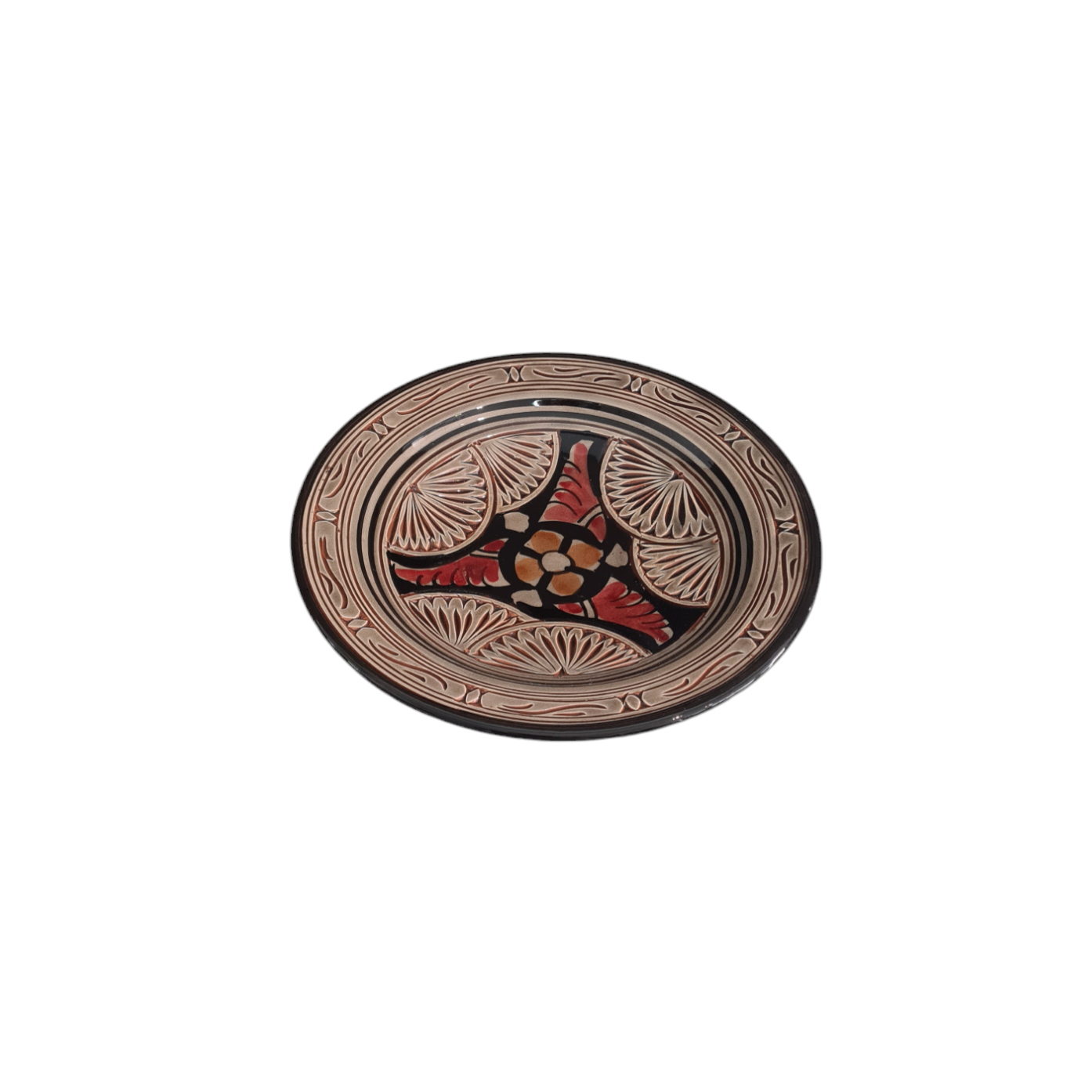 Marockansk grå assiett i handgjord, målad och inristad keramik.