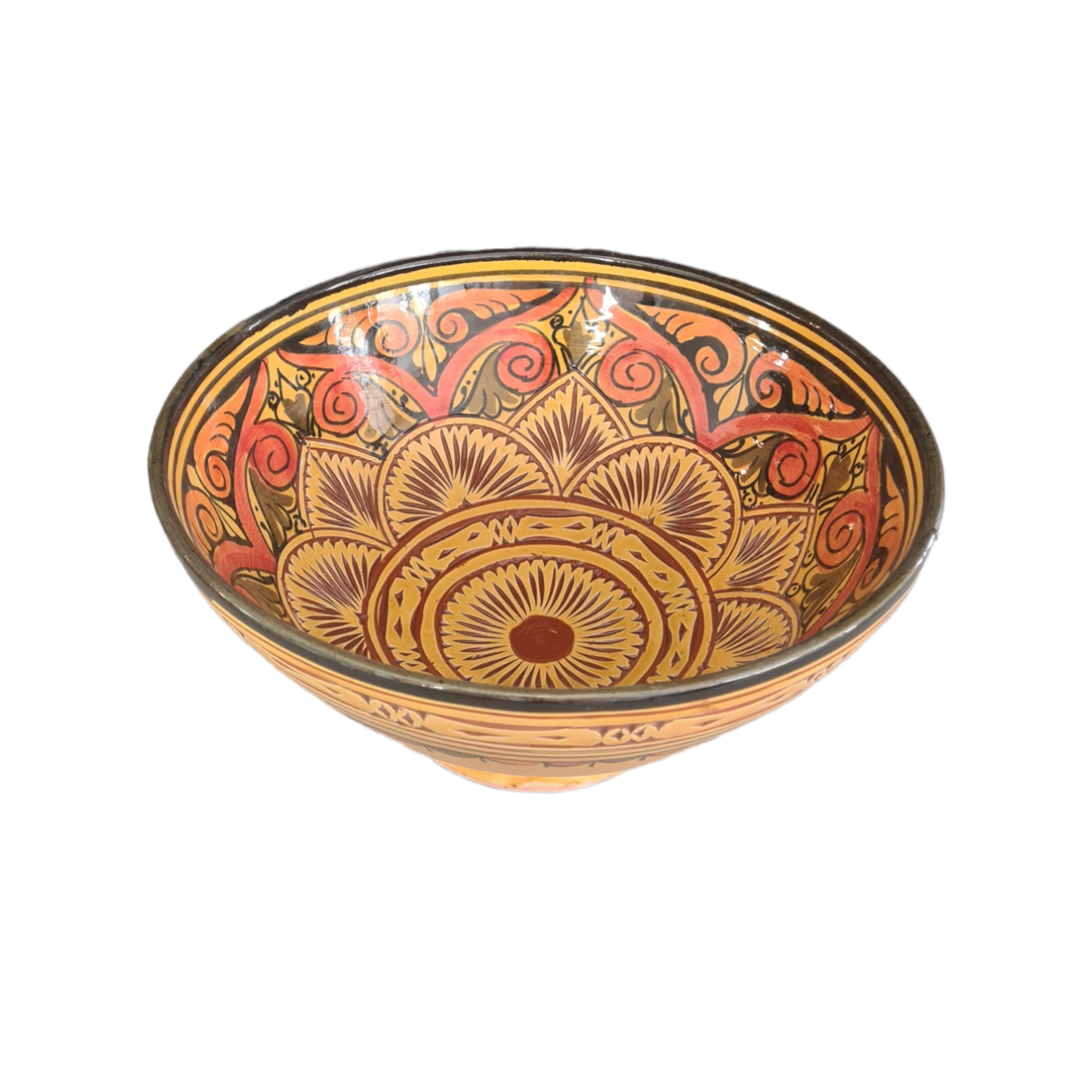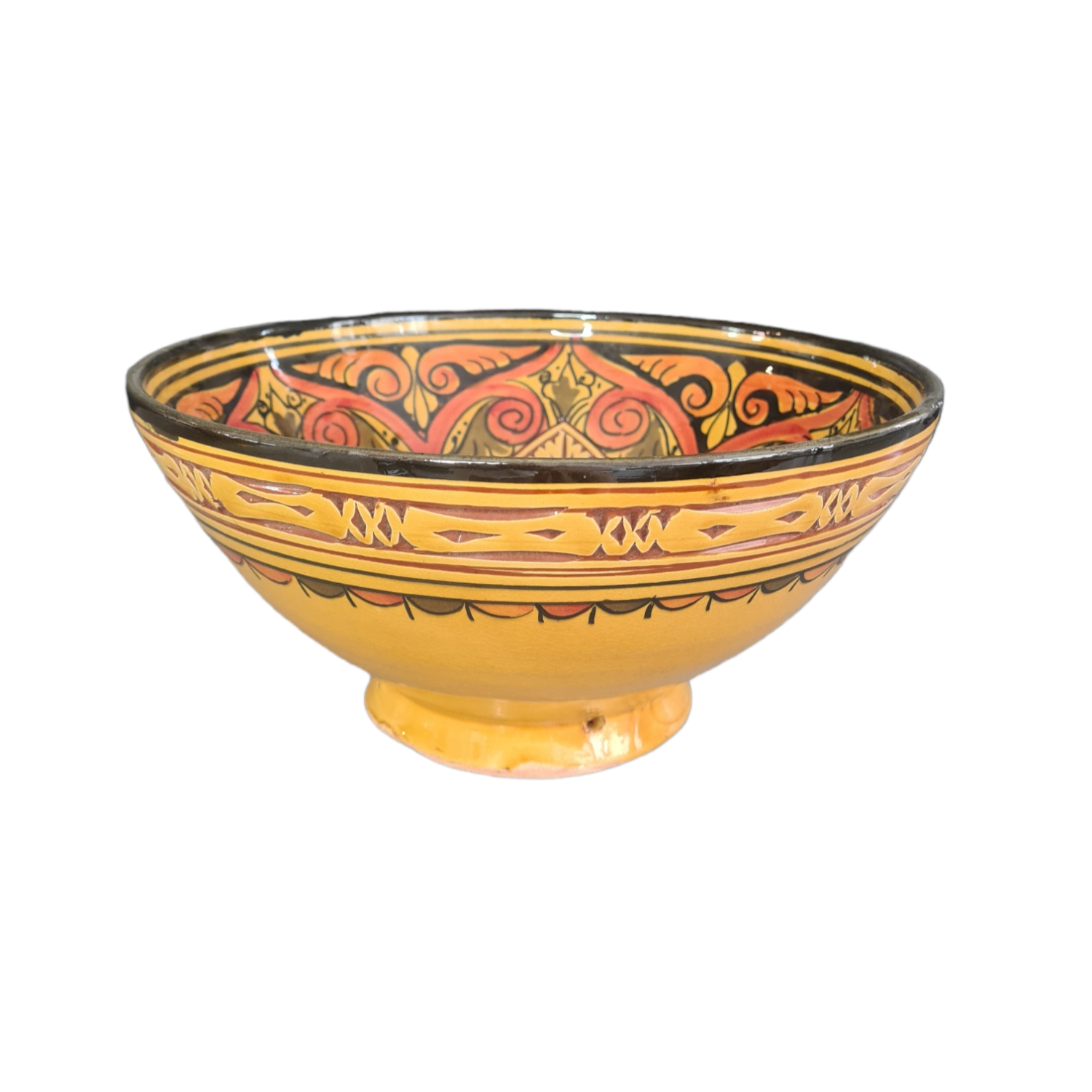 Marockansk gul skål i handgjord, målad och inristad keramik.