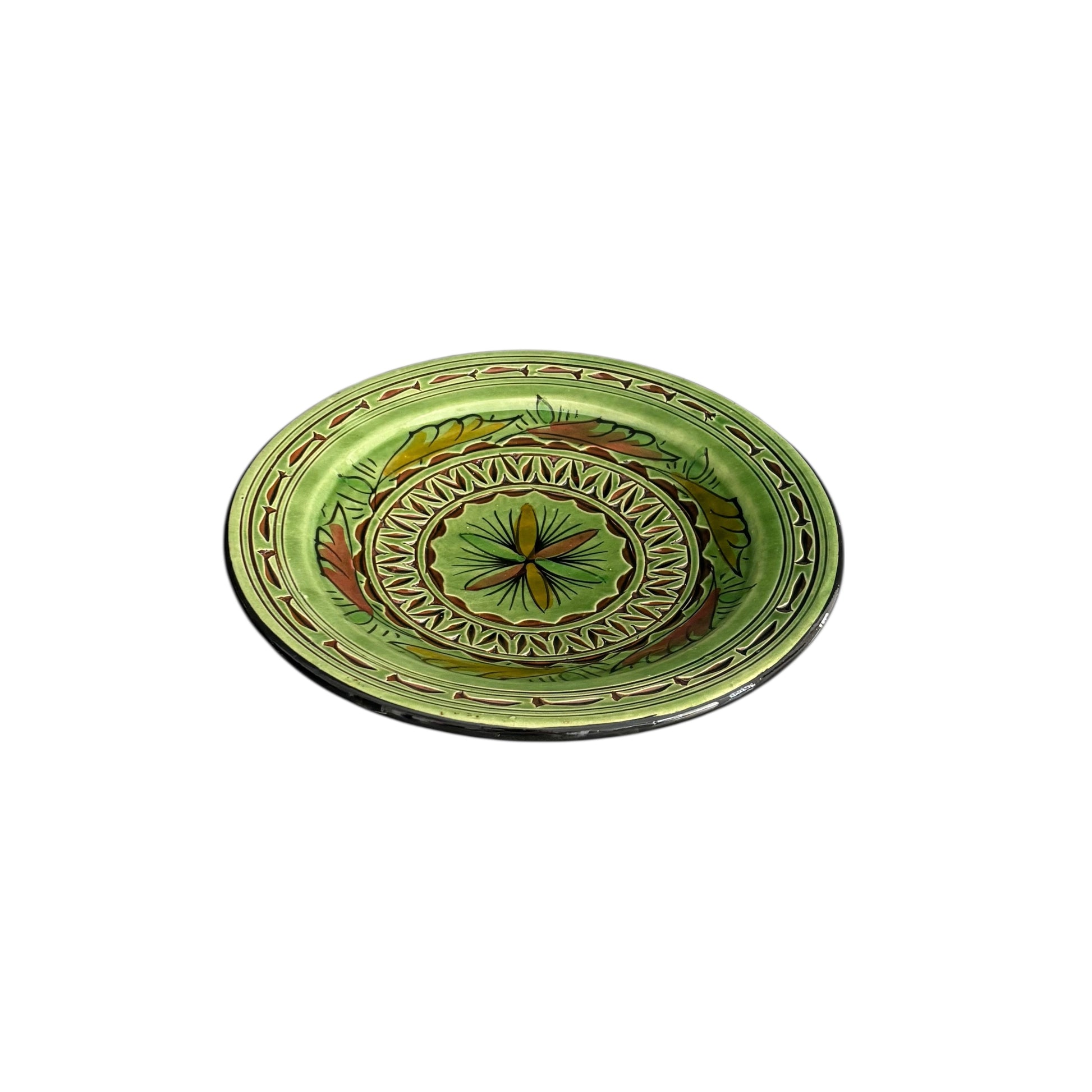 Marockansk skogsgrön assiett i handgjord, målad och inristad keramik.