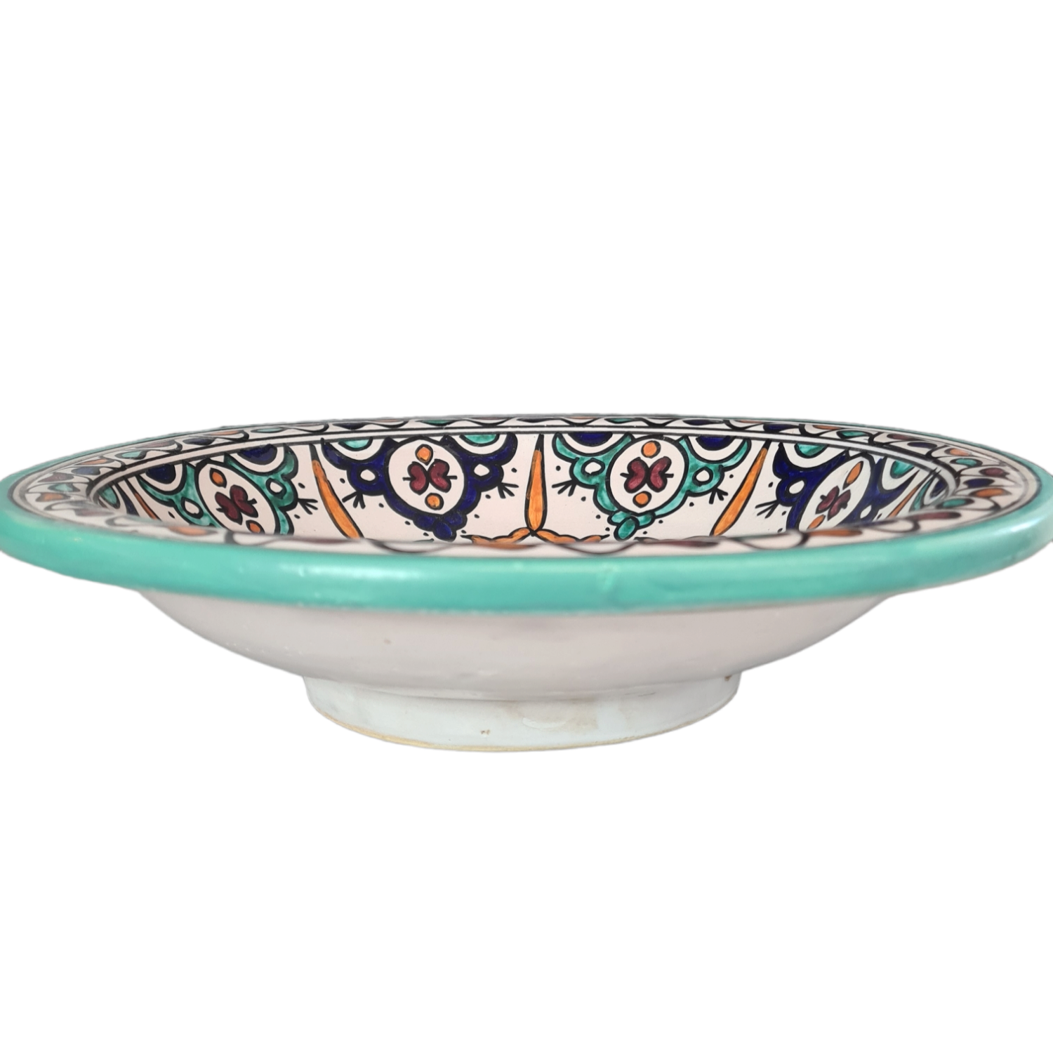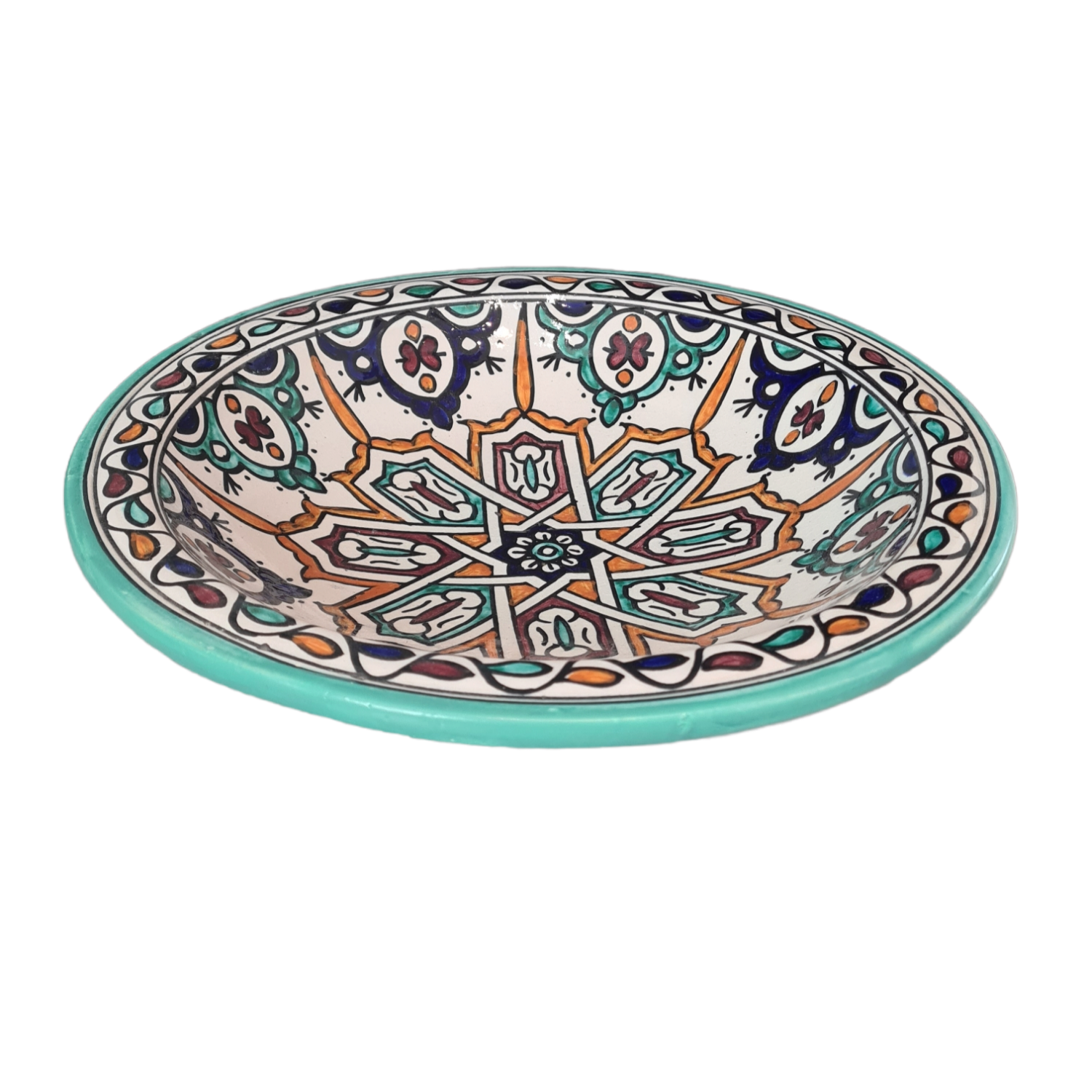 Handmålat robust uppläggningsfat från Marocko i dova nyanser.